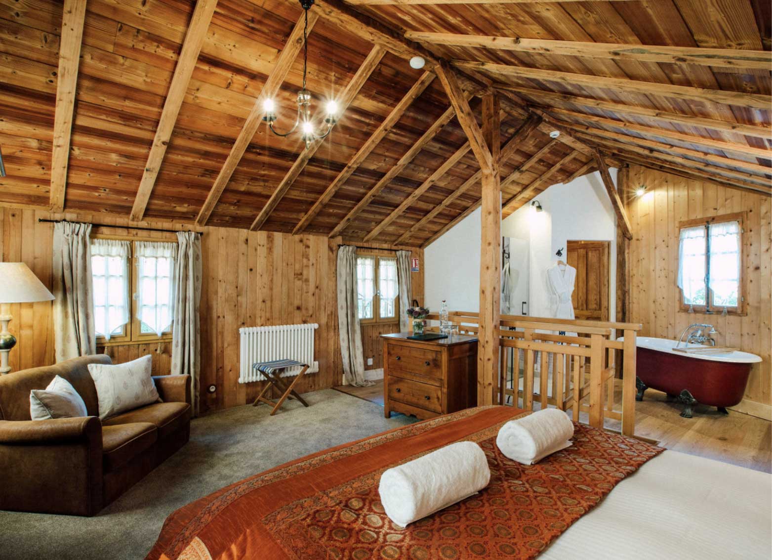 Vous cherchez de l’espace pour vous étendre ? Vous en trouverez largement dans Atelier. Avec 35 m² généreux, un somptueux lit king-size et une baignoire à clapet, vous pourriez être tenté de vous isoler sur le canapé avec un roman… et un café chaud. Jusqu’au moment où l’odeur du petit-déjeuner ou la vue depuis la fenêtre vous rappellent la montagne…