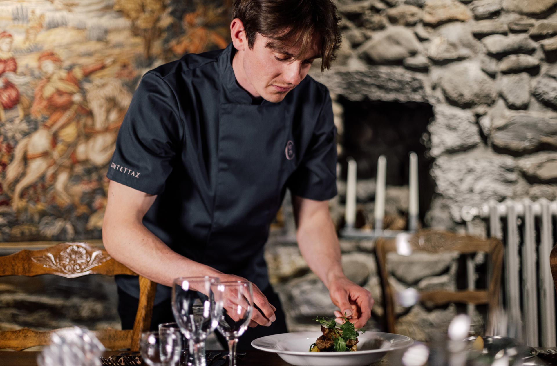 À l’Hôtel Coutettaz, le raffinement français rencontre la réserve anglaise. Dans notre service, dans notre décor – et dans nos plats. Nous laissons les saveurs parler d’elles-mêmes, en sélectionnant soigneusement les ingrédients et en perfectionnant nos recettes pour créer des plats simples mais exceptionnels. Lorsqu’ils sont réussis, même les plats les plus simples deviennent des moments mémorables. Ici, c’est toujours le cas. Quel que soit le menu, vous quitterez votre table rassasié, heureux et impatient du dîner suivant.