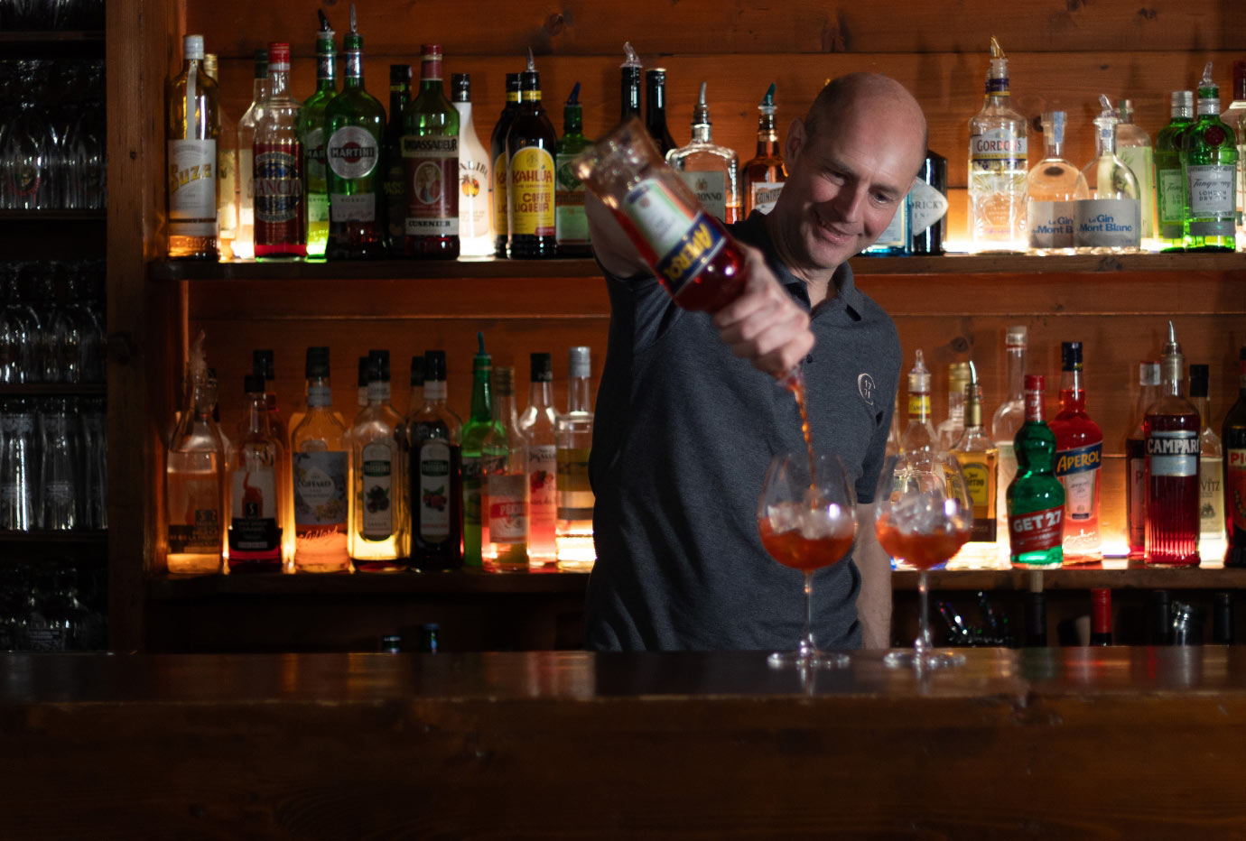 Espresso Martini, Old Fashioned classique ou IPA fraîchement servie et légèrement pétillante ? Les vins ne sont que le début de notre carte de boissons. Nous shakerons ou mélangerons volontiers tout ce que vous désirez, et notre cave regorge de gins, whiskys et autres spiritueux et liqueurs. Demandez-nous conseil si vous voulez tester quelque chose de nouveau. Et bien sûr, nous servons aussi la bière locale Mont Blanc IPA, parfaite après les pistes. Santé !