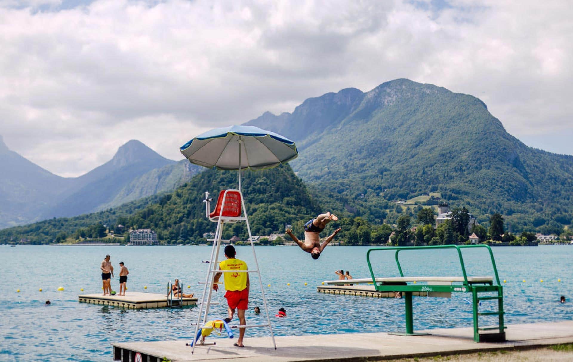 Talloires boasts two gorgeous lakeside beaches, one in the heart of the village and the other 1 km along the shoreline. The first, larger beach is a wonderful place to while away an hour or an afternoon. With a grassy lawn to sit on as you overlook the beautiful blue waters of Lake Annecy you will feel as though you’re in paradise. The swimming area is supervised and you are spoiled for choice by diving boards, waterslides, a snack bar and access to kayaks and SUPs.